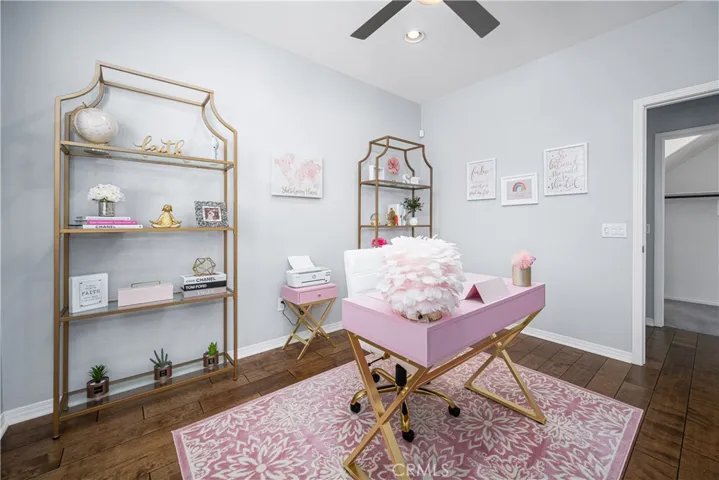 Nestled up against a beautiful hillside in the exclusive community of Orchard Glen, this incredible 3800+ square foot home is an inviting oasis of peaceful living! This expansive five bedroom, four bathroom home with paid off solar boasts an incredible $220,000 backyard remodel completed two years ago with saltwater pool including a Baja shelf, elevated spa, waterfall, outdoor multicolored lighting, a grotto, a firepit with seating, landscaping and fire features, and an outdoor kitchen including BBQ island and refrigerator, so you can enjoy summer evenings with family and friends. Entering into a welcoming foyer, there is a private office to the left, which could also be a sixth bedroom, a powder room for guests, and a formal sitting room. Next, you will find a large yet cozy dining room with plenty of room for family gatherings. The oversized family room features a gorgeous ambient fireplace and plenty of room for seating, adjoining the spacious kitchen with beautiful cabinetry, Quartz countertops, a double oven, and an island perfect for breakfasts before school and work, and additional dining space where you can sit and listen to the waterfall while you enjoy your morning coffee. The interior features an indoor sprinkler system on both levels, ADT security system with cameras outside, recessed lighting, and ceiling fans, as well as dual zoned air-conditioning for up and downstairs. The downstairs is home to a completely separate primary bedroom suite which opens out to a lovely patio adjoining the pool. Making your way upstairs, you will find a third living space which is perfect for hosting friends and family, as well as the option of multigenerational living. The upstairs features a full laundry room with additional sink and storage areas. The upstairs primary suite is incredibly spacious and overlooks the beautiful backyard. The primary bathroom upstairs is where you will relax in your giant soaking tub. His and hers closets as well as his and hers vanity, sinks, and cabinets make for a very peaceful retreat! The remaining upstairs bedrooms are large and open with plenty of natural light. The Orchard Glen community itself is nestled right up against the well-known Skyline Trail, and features miles of hiking and walking trails. Folson Circle is also a double ended cul-de-sac, making it an ideal place for kids to play outside. The front and backyard are both beautifully landscaped, creating an inviting space for wonderful memories to be made.