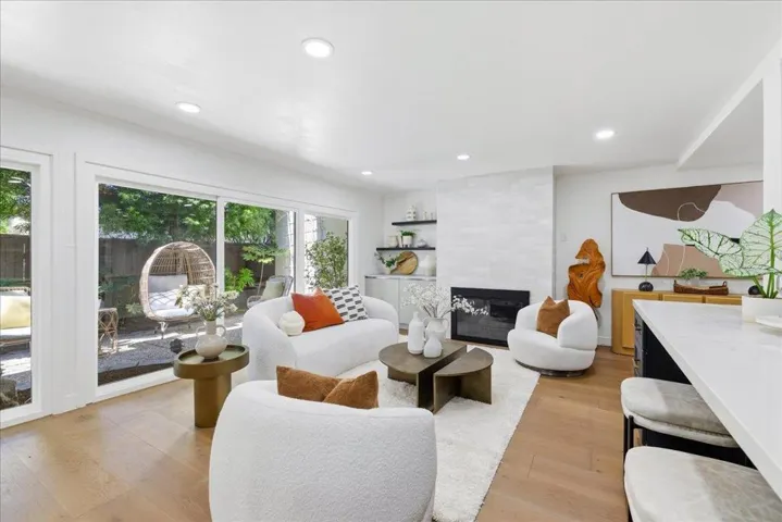Rare opportunity to own a beautifully remodeled PUD townhouse in the highly sought-after West Menlo Park neighborhood. This light-filled home features a 2-car garage, private backyard, and multiple balconies for seamless indoor-outdoor living. The bright living room showcases brand-new large sliding glass doors that bring in abundant natural light and open to patio and deck spaces surrounded by greenery. The fully remodeled kitchen is the heart of the home, featuring custom cabinetry, stunning countertops, premium near-new appliances, and a large island perfect for everyday living and entertaining. The main level includes a versatile bedroom and full bath, ideal for guests, multigenerational living, or a home office. Upstairs offers three additional bedrooms and two remodeled bathrooms. The spacious primary suite features a cozy fireplace and private deck access, while the spa-like primary bath includes dual sinks, a glass-enclosed shower, and a soaking tub. HOA covers internet, water, insurance (including earthquake), and maintenance of landscaped grounds, clubhouse, and two pools. Prime location near Sharon Heights shopping, Stanford, Sand Hill Road, and top-rated Las Lomitas schools. Walking distance to Safeway plaza. You dont want to miss this home!