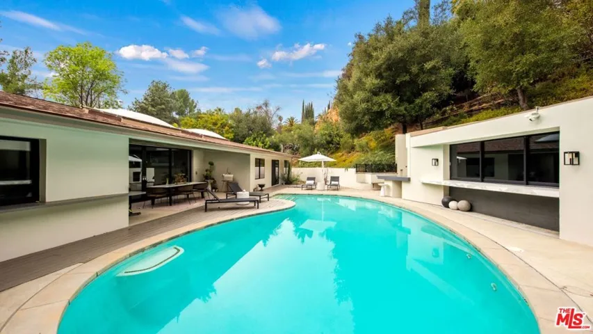 Hilltop Sanctuary nestled in the prestigious “Clark Gable Estates” built in 2015 by Famed Architect Jon Brouse. Privately Gated Poolside Oasis. Furnished 4 Bed 4.5 Bath includes separate Bungalow + Office. Single level Designer Dream home, 7ft Glass Pivot Door Entry & Open Floor Plan, Fleetwood Glass Doors disappear into walls to create a Flowing Indoor/Outdoor Lifestyle. En-suite Bedrooms, Master Suite includes Elegant Bath equipped w/ freestanding tub by Albert Napoli, Walk in Shower, Pivoting Wall accesses adjoining private room for use as Office, Yoga Studio. Floors & ceilings of Distressed French Oak. Sky lights, Sexy 5′ Linear Fireplace. Speakers indoor/out. Chef’s Kitchen, Stainless Steel Appliances, Large Center Island w/ bar seating, Pocket Windows, Glass Walls open to Lush Pool Area, Wood Decking, Water Features, Heated Bar, Multiple Patios w/ built-in seating, Fire Pit, Outdoor Kitchen, Guest House w/ pocket windows that vanish open to a Poolside Bar. The epitome of luxury, offering a serene and sophisticated lifestyle in one of the most exclusive settings.