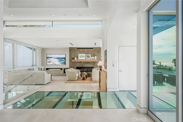 Experience the pinnacle of coastal modernism in this Paul McClean-designed residence situated in the Temple Hills enclave of Laguna Beach. Its three-bedroom, approximately 3,165 square foot floor plan is centered around the breathtaking white water, Catalina Island, and city light views while remaining exceptionally private. The dramatic entryway offers an immediate impression of architectural brilliance, with a mono-stringer staircase and a glass sky bridge that seamlessly extends from the interior out onto a generous outdoor deck with two distinct sitting areas. Sophisticated finishes abound, including sandstone-style tiles, automated blinds, a built-in sound system, and an elevator for effortless access from the garage to all three floors. The upper, main level of this home is centered by a chef’s kitchen featuring a waterfall quartzite island, an eight-burner Miele stove, integrated refrigeration, a wine fridge, and premium Grohe and Kohler fixtures. Configured as one voluminous, open space, this floor also offers a dining area with access to the rear exterior patio and the ocean-facing living section of the home. Below, the primary suite is a sanctuary of luxury, boasting a linear fireplace, an office alcove, dual closets, and a spa-like bath with a soaking tub positioned before a picture window. Every sleeping area enjoys its own terrace access, including two ocean-facing secondary bedrooms on the lower level that open to their own patios. With multiple access points to the outdoors from the main living area and linear fireplaces in the living, dining, and primary rooms, this home perfectly balances neutral-colored natural materials with high-concept design for the ultimate Laguna Beach lifestyle.