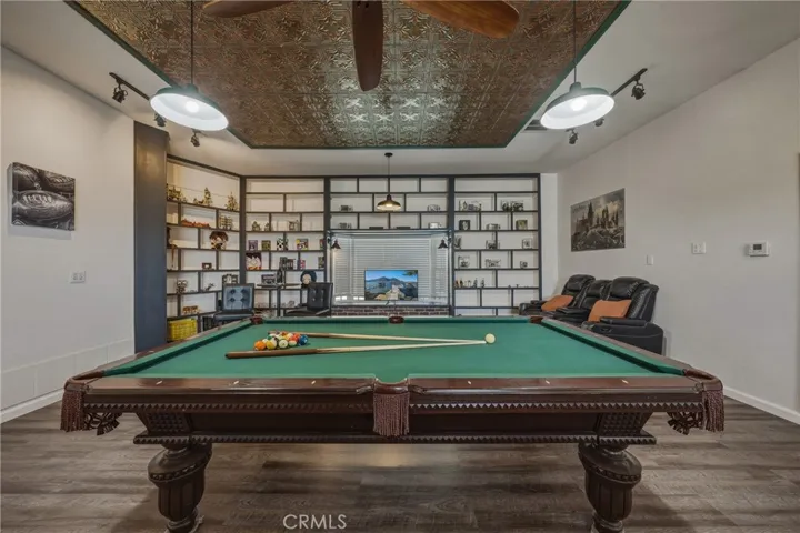 The upgraded kitchen anchors the residence, featuring a Sub-Zero refrigerator, premium finishes, and energy-efficient appliances that blend performance with elevated design. Beautifully remodeled bathrooms reflect quality craftsmanship and timeless style. A dedicated game room complete with pool table enhances the home’s entertainment appeal.