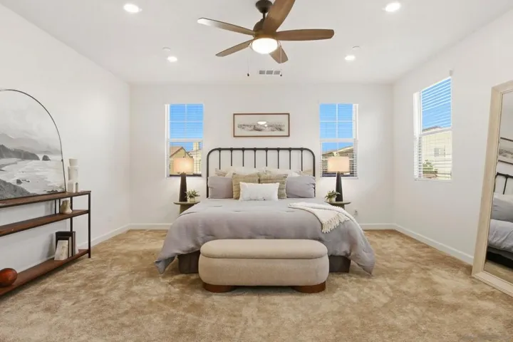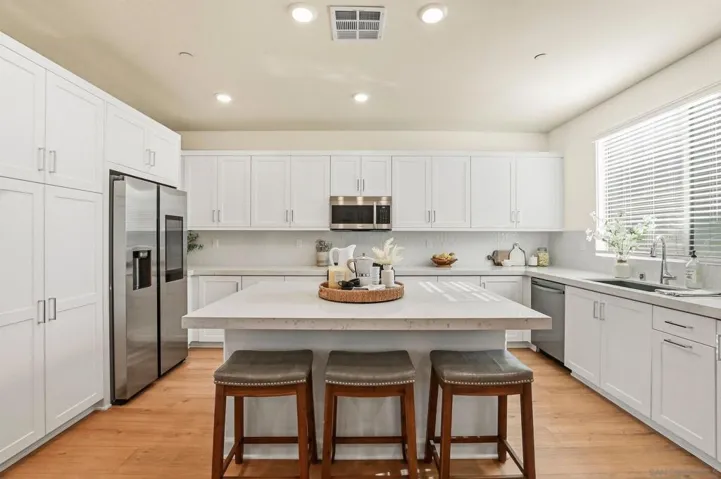 Welcome to this beautifully maintained home in the highly sought-after Village of Montecito in Otay Ranch. Built in 2024 and better than brand-new, this move-in-ready residence offers the perfect blend of modern comfort, thoughtful upgrades, and a true sense of community. The bright, open-concept main level is designed for both everyday living and family gatherings, with the kitchen, dining area, and great room flowing seamlessly together and opening to a spacious outdoor area. A full bedroom and full bathroom on the first floor add flexibility for guests, extended family, or a home office. Upstairs, you’ll find two additional bedrooms along with a spacious owner’s suite featuring an en-suite bath and walk-in closet. This home is packed with valuable upgrades, including owned solar with a battery, a whole-house water filtration system, upgraded flooring downstairs, window blinds throughout, and a beautifully finished backyard with pavers and turf—ideal for kids to play, pets to roam, and easy outdoor entertaining. This home is steps away from Jacaranda Park, and a short walk to Otay Ranch Grove Park, a 7.1-acre green space featuring lit tennis courts, basketball courts, a soccer field, playgrounds, and scenic pathways. Also within walking distance are Summerland Park—offering a wading pool for kids and an adult pool with lap lanes, a 6,000-square-foot deck, and grassy areas—and Meadows Park, featuring a dog park, amphitheater, picnic spots, and fitness stations. With top-rated schools, nearby shopping and dining, and easy freeway access, this home offers an exceptional opportunity to enjoy a vibrant, family-friendly lifestyle in one of Otay Ranch’s most desirable neighborhoods.
