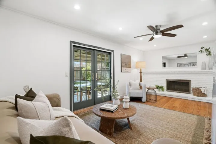 Fully remodeled throughout and perfectly positioned in prestigious Dry Creek Estates, known for its tree-lined streets and underground utilities, this bright home blends elegant entertaining with everyday comfort. The main level features a living room with fireplace and an expansive chefs kitchen with quartz countertops, large center island, gas range, and incredible storage. Formal dining opens directly to the backyard for seamless indoor-outdoor living. The flexible downstairs layout includes two full bathrooms plus a standout den with en-suite bath and kitchenette. French doors lead outside, making it ideal for in-laws, guests, after-pool lounge, or secondary family room. Upstairs offers 4 spacious bedrooms, including a generous primary suite with bonus room perfect for an office or future walk-in closet, plus a newly remodeled hall bath and updated primary bath. Enjoy a private backyard retreat with a pool positioned at the corner to preserve yard space, plus covered patio and lush lawn. Ideally located and assigned to Booksin Elementary, minutes to Downtown Willow Glen and Campbell, with convenient access to major commute routes. Upgrades include owned solar, 200-amp panel, copper plumbing, newer ducting and A/C, and a finished garage with epoxy floors and recessed lights.