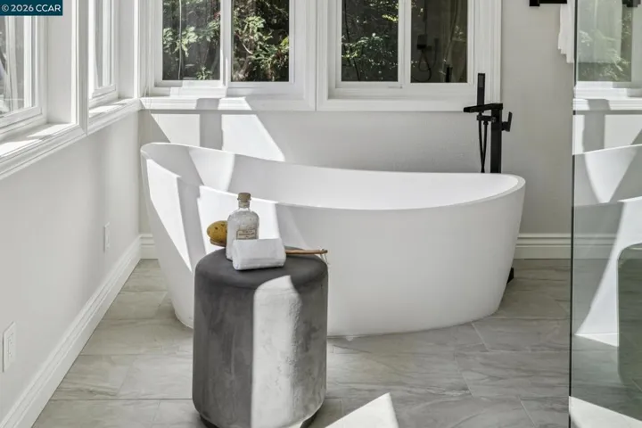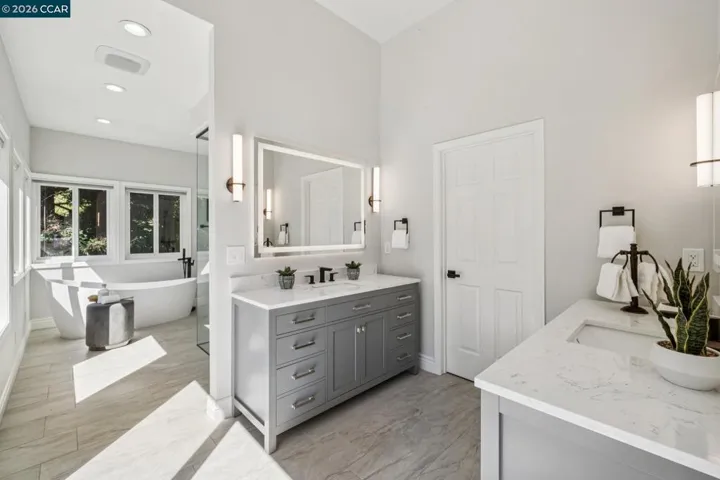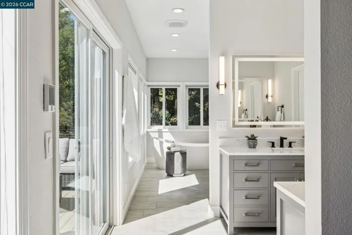 Tucked at the end of a court in coveted Alamo, this exceptional estate offers 3,500± square feet of refined living on an acre of pure privacy backing to open space. Soaring ceilings and rich hardwood floors create a light, airy ambiance throughout the main level, where a bedroom and full bath provide ideal flexibility for guests or multigenerational living. The gourmet kitchen—complete with high-end appliances, abundant cabinetry, and a generous island—opens seamlessly to the inviting family room with custom built-ins and a cozy fireplace, designed for effortless everyday living and memorable entertaining. Expansive gathering spaces flow outdoors to an easy-care yard, perfect for hosting or relaxing in total privacy. Upstairs, oversized secondary bedrooms offer comfort and versatility, while the beautifully remodeled primary suite is a luxurious retreat featuring a spa-inspired bath and spacious walk-in closet. A three-car garage, peaceful surroundings, and premier location complete this rare offering that blends elegance, functionality, and the best in Alamo living.
