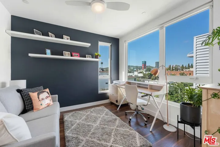Modern tri-level 2 bed and 2.5 bath single-family home in the heart of Hollywood’s Studio District, offering contemporary design, abundant natural light, and panoramic rooftop views. The open-concept main level features a spacious living and dining area framed by oversized windows and high ceilings that enhance the airy feel of the home. The kitchen is designed for both everyday living and entertaining, complete with quartz countertops, stainless steel appliances, a stylish tile backsplash, and ample cabinetry. Rich wood flooring runs throughout the residence, adding warmth to the modern design. The private primary suite occupies its own level and is filled with natural light, high ceilings and enough space to comfortably incorporate a home office or sitting area. The en-suite bathroom features dual vanities, a large shower, and a custom walk-in closet. At the top of the home, there is a secondary ensuite bedroom and a private rooftop deck provides sweeping Los Angeles offering an ideal setting for relaxing or entertaining. Additional highlights include a private front yard space perfect for outdoor dining or BBQ and an attached two-car garage with additional storage. Ideally located near Hollywood’s vibrant dining, shopping, and entertainment destinations, this modern residence offers style, comfort, and exceptional city views in one of LA’s most dynamic neighborhoods.