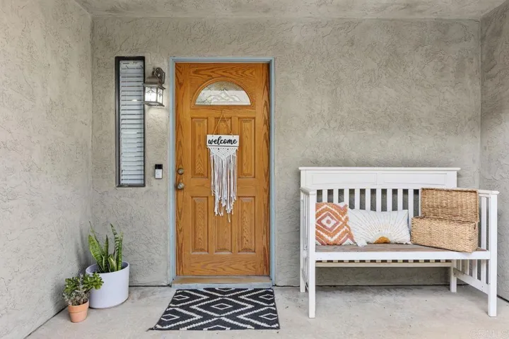 Beautifully crafted custom twin home that lives like a detached residence, offering exceptional space, privacy, and thoughtful design in a highly desirable La Costa setting. The well-designed floor plan features a spacious eat-in kitchen, a formal dining room ideal for entertaining, and a bright, airy living room with a cozy fireplace, soaring vaulted ceilings, and abundant natural light. The kitchen and bathrooms showcase custom cabinetry, complemented by granite countertops, stainless steel appliances, and a gas range—creating a stylish and functional living space. Updated windows throughout enhance both comfort and energy efficiency, along with central air conditioning and ceiling fans in all bedrooms and the living room for year-round comfort. The primary suite opens to an expansive private balcony with sweeping panoramic views—perfect for morning coffee or relaxing sunset evenings. Indoor living seamlessly flows outdoors, with both the living room and kitchen opening to a large, lush backyard featuring mature fruit trees and ample space to garden, entertain, or unwind in a peaceful setting. Ideally situated in a quiet and exceptionally private location, this home offers the serenity many buyers seek. Additional highlights include an attached two-car garage and an extended driveway providing generous guest parking—plus the added benefit of no HOA. A truly unique opportunity in one of La Costa’s most desirable neighborhoods, conveniently located near highly regarded La Costa Meadows Elementary School, shopping, dining, and just minutes from North County’s beautiful beaches.