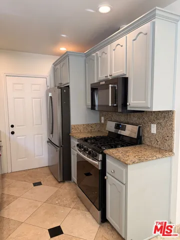 Beautiful and bright contemporary upper unit in a charming upgraded Spanish-style duplex, located in a highly desirable neighborhood. This spacious residence features three generous bedrooms with multiple closets and two full bathrooms. The unit offers and elegant living room, formal dining area, and a stylish wet bar, perfect for entertaining guests. The kitchen includes a cozy breakfast area, granite countertops, custom cabinetry, and stainless-steel appliances, combining functionality with a modern design. Abundant natural light fills the unit through multiple windows in every room, creating a warm and inviting atmosphere. Enjoy a private balcony and the convenience of an in-unit washer and dryer. Large back yard with a variety of mature fruit trees. Ideally located within walking distance to the prestigious Cedars Sinai Medical Center, The Beverly center, Traders Joe and the SLS Hotel, with excellent dining nearby and a short drive to Rodeo Drive, The Grove, and Melrose Avenue. Located in the highly sought after Beverly Hills School District.