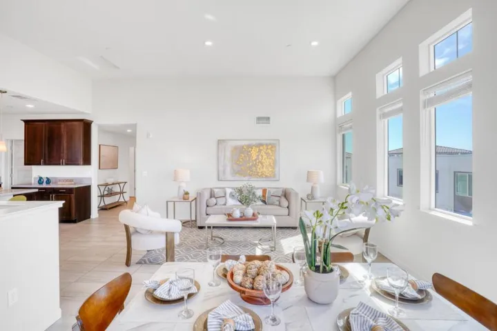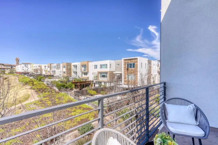 Enjoy hilltop living in this stunning top-floor, end-unit home in the desirable Communications Hill community. Built in 2017, this 2-bedroom, 2-bath residence offers 1,668 sq ft of modern space with spectacular mountain views and abundant natural light. The south-facing living room features soaring ceilings and opens to two private balconies perfect for morning coffee or sunset views. The gourmet kitchen boasts stainless steel appliances, a large center island, and ample storage, ideal for cooking and entertaining. The primary suite includes a walk-in closet and en-suite bathroom with dual vanities and granite tile flooring. Additional features include central AC, in-unit laundry, a whole-home water softener, and an attached two-car garage with extra storage. Residents enjoy parks, playgrounds, hiking trails, and the iconic Grand Staircase. Conveniently located near freeways, shopping, dining, and just 8 minutes to Valley Christian Schools. A rare top-floor view home offering comfort, convenience, and a prime San Jose hillside location!
