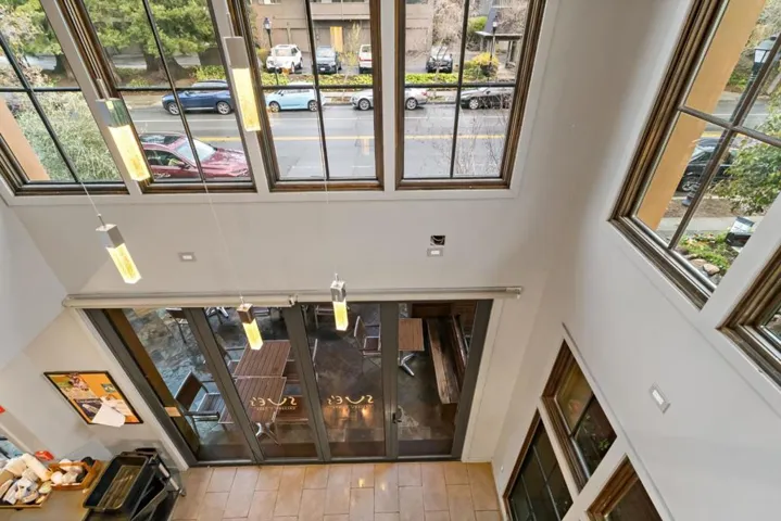 Rare Saratoga Village investment opportunity with stable long-term income. Two architecturally distinctive ground-floor commercial retail units offered as a bundled sale in one of Silicon Valleys most desirable village settings. The modern space features dramatic high ceilings, large picture windows, bi-fold doors opening to an inviting patio with stylish awnings, beautiful views of the Santa Cruz Mountains. The light-filled interior creates a welcoming retail environment w/ strong street presence & excellent visibility. Located in a contemporary mixed-use building at the foothills of the Santa Cruz Mountains, the property enjoys steady pedestrian traffic & is just steps from Saratogas renowned restaurants, cafés, boutique shops, wine tasting rooms, parks, scenic trails. Both units are leased to the same established tenant, Sues Gallery Café, under a 10-year lease with no vacancy through the end of 2033, offering dependable & stable income for investors. This unit includes an upstairs seating area w/ large picture windows & beautiful mountain views. The upper level is currently used by the tenant as an employee rest & storage area, providing additional functional space & flexibility. Units must be sold together. By appointment only. Please do not disturb the operating business