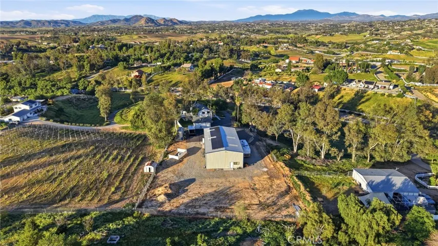 Welcome to 35835 Meadow Ridge, a truly unique property situated on 2.73 acres in the heart of Temecula Wine Country. This privately gated and fully fenced estate offers privacy and space. It is located directly behind South Coast Winery and just minutes from wineries, restaurants, golf courses, Old Town Temecula, and Pechanga Casino. The recently renovated home features 3 bedrooms and 2 bathrooms upstairs. All bedrooms enjoy scenic views, and a large, expansive deck creates the perfect space to relax or entertain. The property also includes an impressive 3,200 sq ft steel building measuring 40×80 feet, with 23-foot ceilings, a 23×23 loft ideal for storage, and a half bathroom. The building is fully insulated and equipped with a 5-ton air conditioning system and an electric heating element. It has a 400-amp electrical panel powered by over 15 kilowatts of solar panels owned in full. Within the building is a 1,000 sq ft ADU featuring a kitchen, open living space, 1 bedroom, and 1 bathroom with dual vanity, shower, and soaking tub. The ADU has its own separate 2-ton high-efficiency air conditioner. The outdoor space is equally impressive, with a brand-new pool built in 2022, fully fenced, and equipped with both electric and propane heating. The usable acreage offers ample space for a vineyard or other uses. The paved road provides easy access to town. Additional highlights include no HOA, low taxes, and location within the highly desirable Temecula School District. Don’t miss this rare opportunity to own a versatile wine-country property that combines privacy, functionality, and a lifestyle.