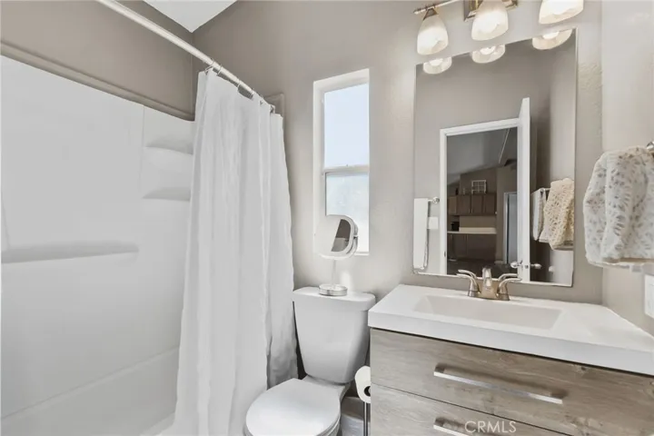 Must See! Welcome to this beautifully maintained updated 3-bedroom, 2-bathroom home with a spacious private backyard for pets to run around and family gatherings under the pergola spending peaceful evenings under the stars. Tucked away in the hills of Corona close to the 91-freeway located in the highly desirable All-Age-Park, Green River Village. This lovely home offers high ceilings, open floor plan, nice size dining area including optional dining table set with chairs, upgraded spacious kitchen with new stone countertops, new window blinds, nice laminate flooring, spacious primary suite features a remodeled private bathroom, remodeled guest bathroom, laundry room, new exterior stairs, newly painted exterior, custom vinyl fencing, automatic water sprinklers for the updated landscaping, a shed in the backyard for extra storage and covered parking that can accommodate up to 3 cars. Be sure to check out the mountain view from the front guest bedroom. Enjoy all the community amenities that include two swimming pools, jacuzzi, dog park, playground, fitness center, clubhouse, billiards room, car wash area, & volleyball area. The park is a bridge between Orange County and the Inland Empire & close to the River Golf Club. This Home is great for first time homebuyers. Schedule your private tour Now!