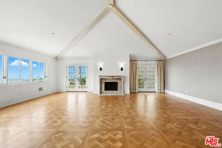 Set above the Chateau Marmont on a quiet cul-de-sac, this 6,687 square foot estate delivers scale, privacy, and unobstructed city views rarely found at this price. A dramatic two-story entry and sweeping staircase introduce the home, with an elevator connecting all three levels for seamless living. Twelve-foot ceilings, Euroline doors, and expansive glass frame panoramic vistas from nearly every room and open to multiple terraces and a mosaic-tiled pool and spa.The main level includes a large living room with terrace access, a formal dining area, and a chef’s kitchen outfitted with Sub-Zero, Thermador, and Miele appliances. Upstairs, the primary suite offers 16-foot ceilings, a fireplace, steam shower, soaking tub, sauna, dual closets, and two private terraces positioned for sunrise and sunset views. Three additional en-suite bedrooms complete the floor.Additional features include a media room, office with its own terrace, interior laundry room, a tranquil garden with mature lemon trees, and a four-car garage with additional parking. Minutes from the Sunset Strip yet completely private, this home combines space, scale, and views in one of the most coveted pockets above West Hollywood. Flexible leasing terms.