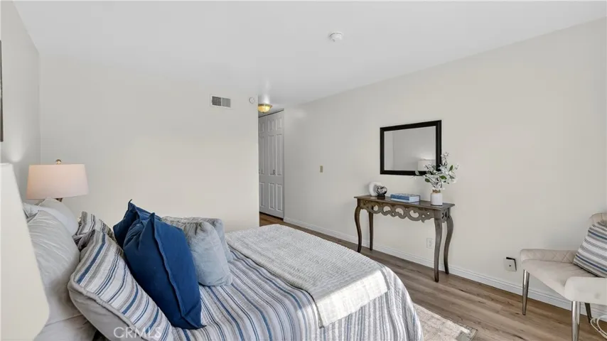 Welcome to the highly desirable Tustin Park community! This charming single level residence offers 1,055 square feet of comfortable living space with 2 bedrooms and 2 bathrooms, combining tasteful updates with a functional layout and inviting outdoor space. A welcoming single entry door with screen door, obscure glass, and a newer light fixture sets the tone as you enter the home. The kitchen features painted cabinetry, granite countertops, and durable tile flooring, providing a bright and practical space for cooking and entertaining. Adjacent to the kitchen, the dining area is highlighted by a chandelier and luxury vinyl flooring, creating a warm and stylish setting for everyday meals or gatherings. The family room is spacious and inviting with crown molding, luxury vinyl flooring, and a sliding glass door that opens to the private patio, allowing for seamless indoor-outdoor living. The primary suite offers luxury vinyl flooring and a beautifully remodeled primary bathroom featuring tile flooring, a walk-in shower with seamless glass enclosure, recessed lighting, new fixtures, and a modern vanity. The second bedroom includes comfortable carpet flooring, while the secondary bathroom features tile flooring, a tub/shower combination, and granite countertops. Step outside to your back covered patio area with charming terra-cotta tile flooring, perfect for relaxing or entertaining. Parking includes one designated space in a shared two-car garage. Additional highlights include new interior wall paint, freshly painted kitchen cabinetry, and central heating and air conditioning for year-round comfort. Residents of Tustin Park enjoy wonderful community amenities including a sparkling swimming pool, relaxing spa, and community laundry facilities. Conveniently located near shopping, dining, parks, and major freeways, this home offers an excellent opportunity to enjoy comfortable living in the heart of Tustin.