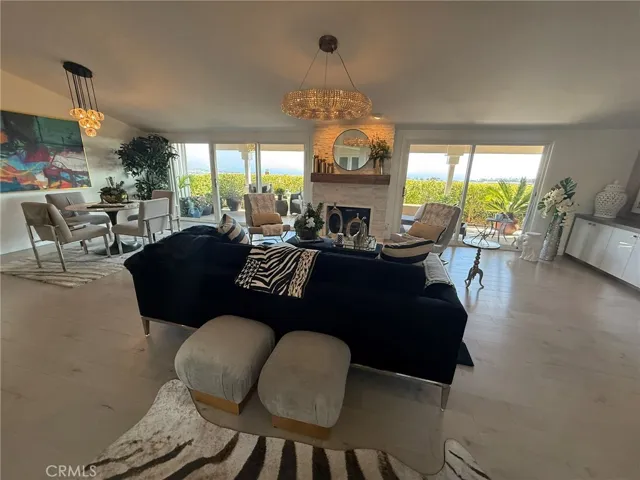 Panoramic 180 Degree White Water Ocean Views from Catalina Island to La Jolla. Monarch Summit I. Stunning Ocean Views of the Coastline. Expansive Ocean Views throughout. Highly upgraded remodeled home, extraordinary high end upgrades including Custom Open Kitchen with raised kitchen ceiling to 10FT. Quartz Cambria Island with Waterfall Design & Double Ogee Edging Countertops, Kitchen Semi Chef PRO Faucet, Franke two compartment sink, Miele Appliances, Miele six burner gas stove, Miele refrigerator built in & microwave built in cabinet. Custom walk-in pantry with glass doors. Large open living room with Ocean View, has custom built in cabinets, desk and Grasscloth Wall with built in TV. Swarovski Knobs throughout the home. Kitchen and dining area with incredible Ocean Views. Master Bedroom Suite offers Ocean Views, new dual pane Milgard picture window, accented wall with slatted wood behind headboard with accent color and remote shades. Master Bathroom has custom vanity, two sinks, custom porcelain floors, Quartz Countertop and custom Travertine tiled shower, three jets and water temperature control, crystal lighting in shower with Sapphire glass doors, Toto toilet & two Solar Skylights. Newer Ceiling fan and custom closet systems throughout the entire home. Secondary Bedroom with Bath Solar Skylight & custom closet organizer. Slider opens onto enclosed patio courtyard. Light toned engineered hardwood floors from Canada throughout. All new closet doors and French doors throughout. All new and upgraded recessed lighting throughout. Lighted dimmer system in all the rooms and crystal lighting fixtures throughout. Contemporary baseboards and door moldings. New HVAC System put in 2024. Living room has masonry fireplace.
