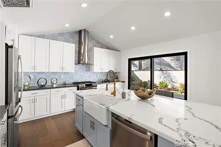Completely reimagined with designer finishes and exceptional attention to detail, this beautiful and rarely available, remodeled single-story home in the coveted El Niguel Heights neighborhood offers 4 bedrooms and 3.5 bathrooms. You’ll find the main bedroom en-suite has a oversized closet with built in shelving, dual sinks, oversized shower and lit vanity mirrors. There is a Jack & Jill bathroom between two of the guest rooms and the fourth bedroom also makes a terrific office space. No expense has been spared in featuring Jeld-Wen aluminum clad windows, Garrison wide-plank engineered hardwood flooring, brand new drywall finished to an almost perfectly smooth level inside. The exterior showcases new smooth stucco, custom planters and walls, and elegant Belgard concrete pavers, complimented by gorgeous new landscaping that enhances the home’s curb appeal and back yard’s beauty. The primary and secondary bathrooms have been completely remodeled with honed marble tile and flooring, creating a timeless & luxurious feel. The powder room features Kalista & Kohler fixtures paired with Serena & Lily wallpaper for a refined, designer touch. Additional upgrades include Reformation lighting fixtures, new interior doors and baseboards, and new high-end roof gutters with custom drain pipes. Every detail has been thoughtfully upgraded, delivering model-home quality throughout. This stunning property is truly turn-key & ready for immediate move-in. A terrific place for family & entertaining. Welcome home!!