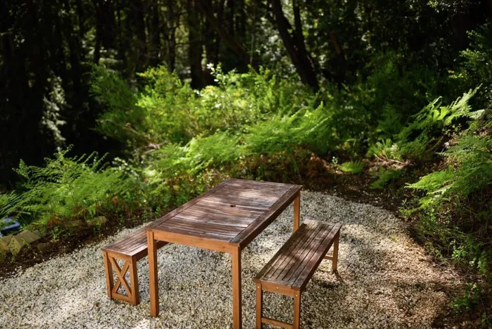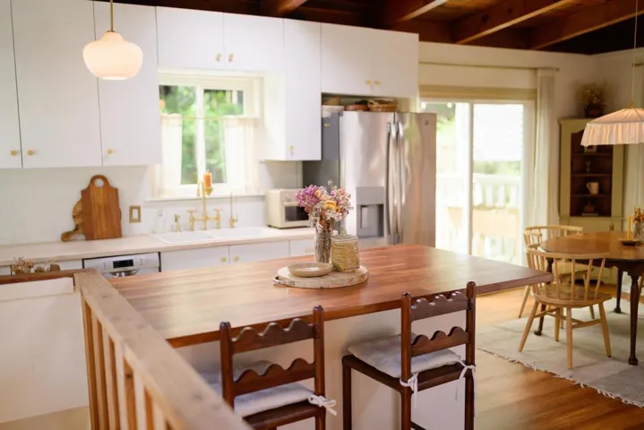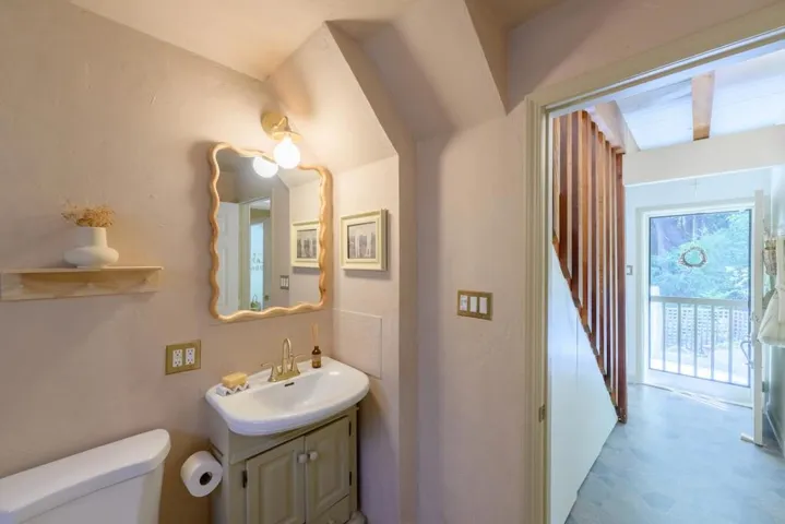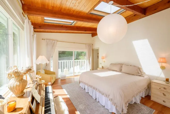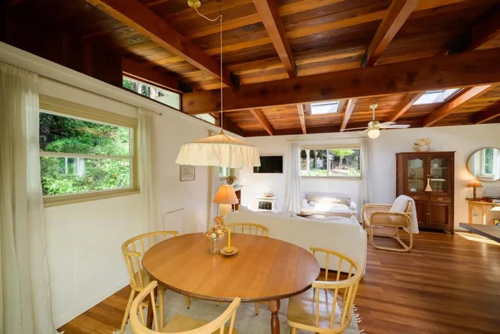 Beautifully updated home with separate ADU on a large lot featuring a peaceful forest setting and seasonal creek. The main home offers a desirable reverse floor plan with the great room and kitchen located upstairs, while three bedrooms and a full bath are on the lower level. The spacious primary bedroom is filled with natural light from multiple windows and skylights and features stunning vaulted wood-beam ceilings and private access to the front porch. The inviting kitchen offers beautiful wood-block countertops and abundant white cabinetry and flows seamlessly into the living and dining areas. Dramatic vaulted ceilings and expansive windows bring in natural light and showcase the surrounding nature. Step out onto the balcony deck for al fresco dining among the trees. A large storage and laundry room is conveniently located between the main house and ADU. The detached ADU offers a full kitchen, dining area, separate bedroom/living space, and full bathroom – perfect for guests, extended family, or a home office. Multiple decks and patios, hot tub, outdoor shower, and sunny lawn areas create wonderful outdoor living spaces. Minutes to downtown Felton, hiking trails, and the beaches of Santa Cruz.