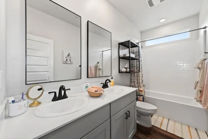 Welcome Home to this spectacular 5 bed, 3 bath home on the NW end of Park Circle in beautiful Valley Center. Once here, you won’t want to leave this nearly 3000 SF home with customization everywhere…from the built-in coffee/wine bar in the kitchen, to the upgraded flooring and loft/living space upstairs, to designer paint and wall details. Sitting above the street below, you can BBQ and play in the turf-covered backyard while enjoying the mountain views rather than your neighbors’ windows! Downstairs boasts an open concept living, dining and kitchen areas, great for entertaining. One bedroom and full bath downstairs along with a flex space, handy for home office. Upstairs hosts 4 bedrooms and 2 full baths, including a lovely primary suite with closet space for days. The owned 4.2 kw solar system and 50 watt EV charger in the garage make for easy energy efficiency. Park Circle offers a host of amenities including 2 pools, dog parks, pickleball court, grills, 6.6 acres of park space, 8 miles of trails, and so much more!