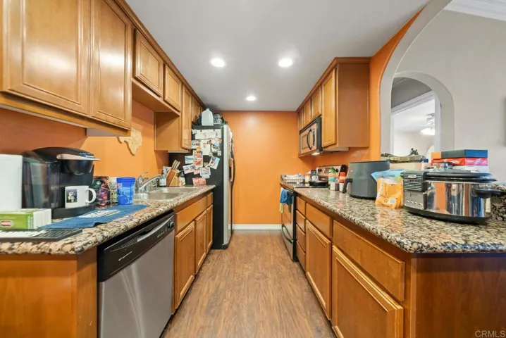 Beautifully maintained 2-bedroom, 2-bath condo offering 885 sq ft of comfortable living space in a secure gated community. This well-designed unit features an open floor plan with abundant natural light, a spacious living area, and a functional kitchen with granite countertops, upgraded cabinetry, and stainless-steel appliances. Both bedrooms are generously sized, with private or nearby full bathrooms, providing flexibility for guests or roommates. Additional highlights include central A/C, in-unit washer and dryer, updated flooring and paint, and a private patio/balcony for relaxing outdoors. Residents enjoy resort-style community amenities including a pool, spa, fitness center, clubhouse, playground, and BBQ areas. Conveniently located near shopping, dining, major freeways, and beaches, making it ideal for both commuters and those seeking a coastal lifestyle.