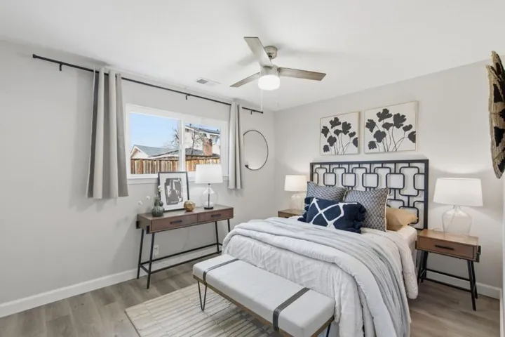 Meticulously maintained Piedmont Heights home on a quiet Milpitas street. This 3-bedroom, 2-bath home offers approx. 1,102 sf with a comfortable and functional layout and a spacious backyard. Recent improvements include a remodeled kitchen and bathrooms, newer flooring, LED recessed lighting, windows and doors, SS appliances, a 200-amp electrical panel, and a newer HVAC system with added attic insulation for energy efficiency. Interior improvements were completed with permits. The garage features new sheetrock walls and epoxy flooring. Outdoor enhancements include a newer concrete driveway, paver surroundings, and a French drain system. Located near multiple parks and Bay View Golf Club, with hiking nearby at Ed R. Levin County Park. Short walk to highly rated schools including Alexander Rose Elementary and Merryhill Private Elementary and Middle School, and just minutes from Rancho Milpitas Middle School and Milpitas High School. Close to Ocean Supermarket, Safeway, The Great Mall, Milpitas Sports Center, the library, and many popular restaurants. Quick access to major commute routes including Hwy 680, 880, and 237, nearby high-tech companies, and a Google shuttle stop right on E Calaveras Blvd. A wonderful opportunity to own a home in one of Milpitas most convenient locations!