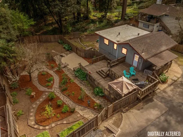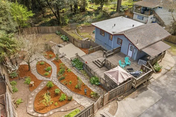 This charming 2 bed/2 bath mountain home embodies a sense of whimsy thanks to spacious flat and sunny yard with meandering pathways, artistic stone work to mimic a creek, and mature landscaping. Plenty of room to host guests for a delicious BBQ on the spacious deck while a warm summer breeze blows gently in the wind and with parking for seven vehicles the more the merrier. With the kitchen overlooking the living room thanks to an oversized serving window you wont miss a minute of fun while your guests lounge in the living room. Downstairs provides is a bonus flex spaces that could be converted into a workshop, WFH office, and home gym with room to spare. The fenced in yard provides a safe space for fido to play and gardeners are sure to delight in the bountiful sun and flat lot for gardening or adding raised beds. Easy access to Highlands Park, La Placa Bakery, incredible outdoor recreational activities, and commuter routes.