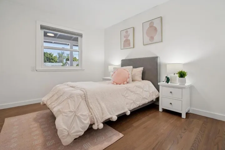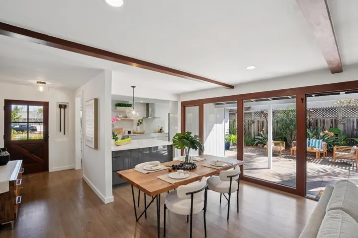 Welcome to a serene Silicon Valley oasis walking distance to Santana Row and Santa Clara Valley Medical Center. This beautifully updated home blends timeless architectural character with modern comfort in a convenient San Jose location. Exposed beam ceilings and large picture windows create a bright, airy living space, bringing natural light and peaceful garden views indoors. The open-concept living and kitchen area offers a wonderful sense of space and connection to surrounding greenery. The main residence has been thoughtfully renovated with refinished flooring, fresh interior paint, and updated kitchen and bathrooms featuring high-quality contemporary cabinetry and premium Bosch appliances, creating a stylish, move-in-ready home for comfortable living and entertaining. Adding flexibility, the property includes a cottage with its own kitchen and bath, ideal for guests, extended family, or a private office. Ideally located for Silicon Valley professionals, the home offers convenient access to major tech campuses approximately 10 minutes to Apple Park, 15 minutes to Nvidia, and about 10 minutes to Adobe in downtown San Jose. With its tranquil garden setting, modern updates, income potential, and prime Silicon Valley location, this home offers an exceptional lifestyle opportunity.