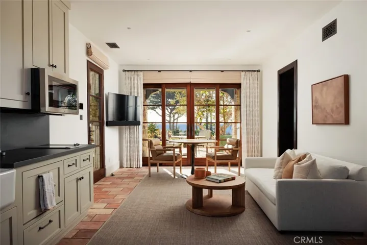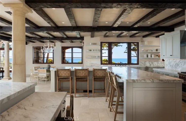 Among the most significant oceanfront estates along Southern California’s coastline, this nearly three-acre compound occupies a commanding position atop a bluff within the guard-gated enclave of Cotton Point Estates. Set directly above private shoreline and moments from the legendary waves of Trestles, the property offers sweeping panoramic views, exceptional privacy, and a rare connection to one of the region’s most celebrated coastal landscapes. Originally designed in 2007 by noted architect James Glover, the residence reflects timeless Spanish Colonial and Mediterranean architecture, thoughtfully oriented to capture ocean, sky, and sunset from every principal room. Following its acquisition, the estate underwent an extensive, multi-year transformation that elevated the property through comprehensive architectural renovation, reimagined landscaping, advanced audio-visual integration, pool reconstruction, refined kitchen and bath improvements, custom plasterwork, infrastructure and systems upgrades, and a fully realized interior design program. The result is a residence that preserves architectural character while delivering the scale, comfort, and finish expected of a world-class coastal home. Spanning approximately 13,000 square feet, the compound offers seven bedrooms, seven full baths, and three half baths across expansive formal and informal living environments, complemented by a wine cellar, a prep kitchen, and a separate three-bedroom guest residence. Privately set within its own wing, the primary suite enjoys beautiful views, while every major space opens to gardens, terraces, or uninterrupted ocean horizon. The grounds unfold across sweeping lawns, secluded courtyards, and layered terraces leading to roughly 450 feet of ocean frontage and a striking 55-foot pool oriented toward uninterrupted coastal views. An event lawn and nine-car garage complete an estate designed equally for private retreat and large-scale entertaining. Defined by scale, privacy, architectural pedigree, and extraordinary reinvestment within one of the coast’s most protected oceanfront enclaves, this offering is a truly rare Southern California estate.