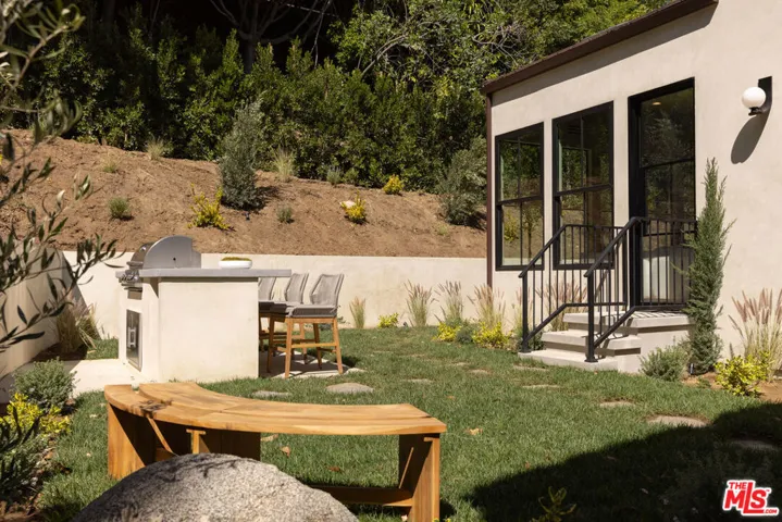 Designed by Abode Homes, this fully reimagined residence in the coveted Longridge Estates represents a refined approach to architecture, craftsmanship, and livable design. Known for creating thoughtfully detailed homes throughout the area, Abode brings a careful balance of proportion, natural materials, and modern functionality to each project. Silver travertine pavers lead to custom Pinky’s iron entry doors, revealing light-filled interiors defined by soaring 10-foot ceilings and a marble fireplace that anchors the main living space. Newly installed windows and doors invite natural light throughout while creating a seamless connection to the surrounding landscape.At the center of the home, the kitchen is designed for both everyday living and effortless entertaining. Leathered Taj Mahal quartzite countertops pair beautifully with custom rustic white oak cabinetry, offering generous workspace and storage. Custom white oak millwork carries throughout the home, bringing warmth, texture, and continuity to the interiors. The primary suite serves as a peaceful retreat tucked among mature trees, featuring tailored millwork and a spa-inspired bath finished with Viola marble, handcrafted zellige tile, and unlacquered brass fixtures. The powder room showcases Roman clay plaster walls, an integrated travertine basin, and Waterworks fixtures. Modern comfort is seamlessly integrated throughout the home with smart home features including a security system, surveillance cameras, and a fully integrated indoor-outdoor speaker sound system. Designed with longevity in mind, the home also incorporates fire-resistant elements including a new tile roof and smooth stucco exterior. Major improvements include all new windows and doors, new flooring, updated HVAC systems, copper plumbing, upgraded electrical, and thoughtfully designed drought-tolerant landscaping. The outdoor BBQ and dining area extend the living spaces outdoors, creating a relaxed setting for quintessential California entertaining. Set on a quiet street just moments from the restaurants, shopping, and fitness destinations along Ventura Boulevard including Erewhon Market and the Sportsmen’s Lodge. Longridge Estates remains one of Sherman Oaks’ most desirable neighborhoods, long favored by notable figures in entertainment and the arts.