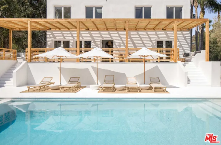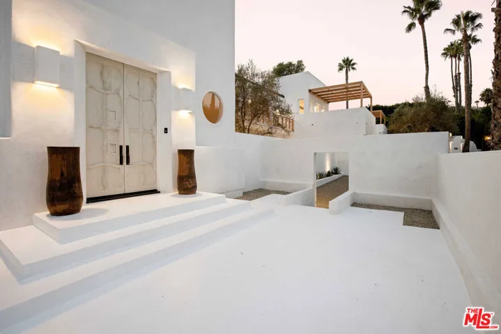 This Malibu estate is a modern, Santorini-inspired masterpiece, blending California’s casual elegance with Greek resort luxury. Behind two private gates lies a palm-lined property with mature olive and fruit trees. In the main residence, impeccable craftsmanship greets you at every turn. Enjoy a bright living room with 30-foot ceilings, a gourmet kitchen with Caesarstone countertops, tadelakt bathrooms, an office, library, and gym. Designed for effortless entertaining, the home features an audio system, theater, bar, wine cellar, and game room. Dazzling ocean views and a lavish primary suite await on the second floor. Explore the grounds, with winding paths, a pool and spa, volleyball court, guest house, and three-car garage. Moments from Escondido Beach and Geoffrey’s Restaurant, this tranquil and private estate feels a world away.