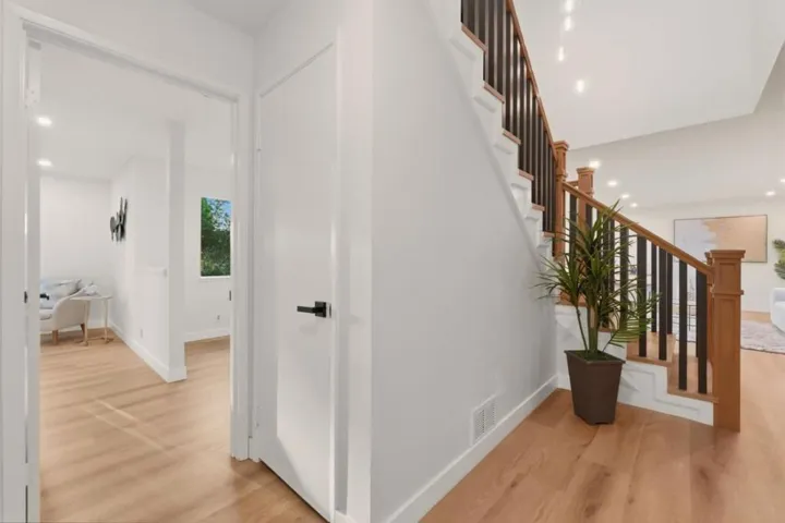 Welcome to this beautifully updated two-story home offering 4 bedrooms and 3 full bathrooms, with a highly desirable first-floor bedroom and full bath, perfect for guests or multi-generational living. With approximately 1,949 sq ft of living space on an expansive nearly 7,400 sq ft lot, the home provides both comfort and room to grow. Recent permitted renovations include a fully remodeled kitchen and a stunning primary bathroom, thoughtfully designed with modern finishes. The home features durable vinyl flooring throughout, creating a clean and cohesive look. A newly installed staircase adds architectural elegance, while skylights fill the interior with abundant natural light. The kitchen is equipped with recently installed SS appliances, quartz counter tops, breakfast bar, ideal for everyday cooking and entertaining. Major systems including heating and cooling have also been upgraded in recent years for improved comfort and efficiency. Step outside to enjoy the charming enclosed front courtyard, beautifully finished with classic brick flooring an inviting and private outdoor space perfect for relaxing or entertaining. Combining tasteful upgrades, functional layout, and a generously sized lot, this home offers a rare opportunity to enjoy comfort, style, and convenience.