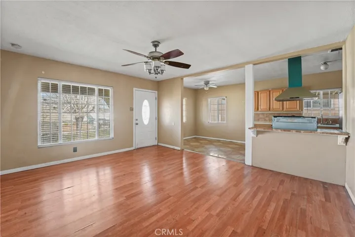 Welcome to this charming single story home located in the heart of Barstow, California. Offering 3 bedrooms and 1 bathroom, this property presents a great opportunity for first time buyers, investors, or anyone looking for an affordable home with plenty of potential. As you arrive, you are welcomed by a spacious covered front porch that spans the width of the home, creating a relaxing space to enjoy morning coffee or unwind in the evening. Inside, the home features a comfortable living room with laminate wood flooring and ceiling fan, flowing into the dining area and kitchen to create a practical layout for everyday living. The kitchen offers generous cabinet space, tile flooring, and a functional design with plenty of room for cooking and storage. Each bedroom is nicely sized with natural light and laminate flooring throughout much of the home. The property also offers a long driveway with a covered carport and a detached garage, providing ample parking and storage space. In the backyard, you will find a large covered patio area that is ideal for outdoor gatherings, along with a spacious yard that offers plenty of room to garden, entertain, or create your own outdoor retreat. With its convenient location and flexible layout, this home presents an excellent opportunity to make it your own while building equity. Whether you are looking for a place to call home or an investment property, this Barstow home is full of potential.