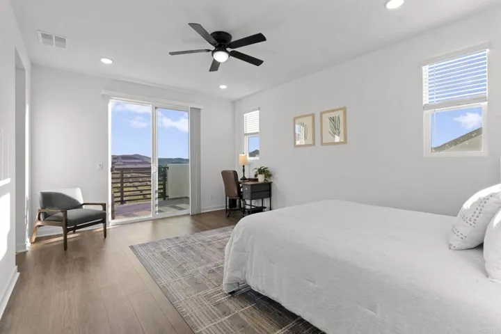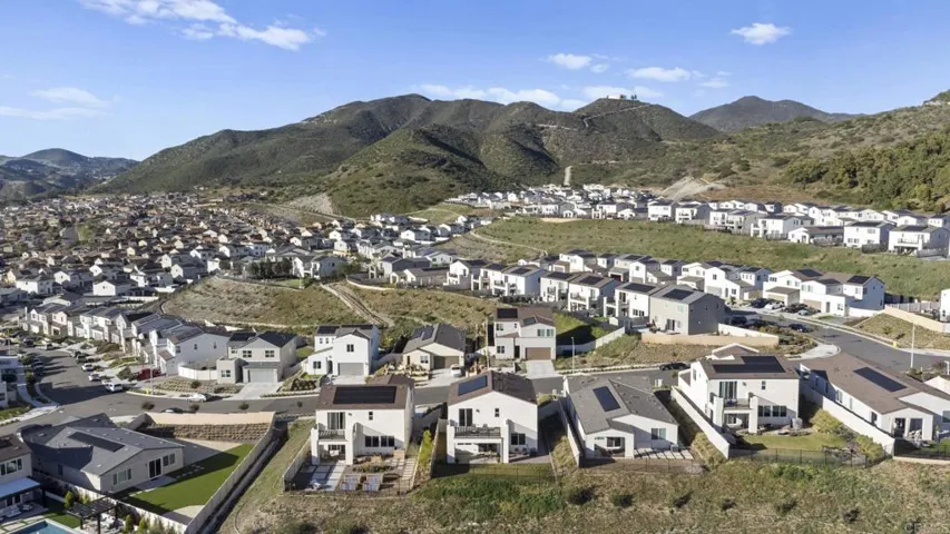 Thoughtfully positioned to capture sweeping mountain vistas and breathtaking sunset views, this nearly new 2024-built residence offers elevated countryside living in the desirable Citro Community of Fallbrook. This beautifully designed 4-bedroom, 3-bath home blends modern comfort, energy efficiency, and smart technology with serene rolling hill surroundings. The versatile floor plan is ideal for today’s lifestyle, featuring a full bedroom and bathroom on the main level—perfect for guests, multigenerational living, or a private home office. The main living area showcases a bright open-concept layout where the kitchen and living space flow seamlessly together, creating a welcoming environment for everyday living and entertaining. The upgraded kitchen stands out with granite countertops and backsplash, crisp white cabinetry, modern hardware, and a spacious walk-in pantry that provides exceptional storage. Numerous builder upgrades enhance the home throughout, including upgraded luxury vinyl plank flooring, tiled bathrooms, ceiling fans, and a tankless water heater. The home also features owned solar panels, central air conditioning, and Smart Home technology allowing you to conveniently control temperature and lighting from your phone. Upstairs, you’ll find the remaining bedrooms and bathrooms along with a full laundry room equipped with side-by-side full-size washer and dryer. Outdoor living is just as inviting, with peaceful countryside views from the expansive upstairs balcony and a covered patio below overlooking the landscaped yard with lush grassy space—perfect for relaxing, play, or entertaining. Residents of the Citro community enjoy resort-style amenities including a community center, pool, dog park, community garden, and approximately 14 miles of scenic hiking and biking trails. Nearby Willow Grove Park offers a convenient playground, while Mount Monserrate provides popular hiking trails with rocky terrain and panoramic summit views. Located within the highly regarded Bonsall Unified School District and just minutes from charming downtown Fallbrook, residents enjoy easy access to boutique shops, local wineries, equestrian facilities, and scenic outdoor recreation. Combining contemporary finishes, smart efficiency, and a prime view location in one of North County’s most sought-after newer communities, this move-in ready home delivers the perfect blend of comfort, style, and lifestyle.