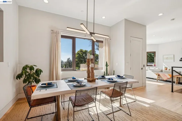 Exquisite contemporary in the sought-after Piedmont Pines neighborhood of the Oakland Hills. Built in 2021, this modern home offers sophisticated design, luxurious finishes, & seamless indoor-outdoor living surrounded by the natural beauty of the East Bay hills. The home features 4 bedrooms & 3.5 bathrooms across multiple levels. The entry level includes a spacious en suite bedroom-ideal for multigenerational living, office, gym, or studio. With its own entrance, patio, & pre-installed plumbing & electrical for a future kitchen, the space also offers ADU potential. The main living level features a chef’s kitchen with premium appliances, built-in refrigerator, designer backsplash, & a large island that flows into the dining area. The living room with gas fireplace opens to a balcony overlooking treetops, perfect for outdoor dining. A BBQ patio & bonus family room provide additional entertaining space. The primary suite offers dual vanities, soaking tub, stall shower, & spacious closets. Additional highlights include a 2-car garage with workshop area, EV charging, elevator access, smart home technology, 3-zone climate control, tankless water heater, & owned solar. Conveniently located near Montclair Village, schools, parks, & Highway 13 & 24. One percent closing cost credit!
