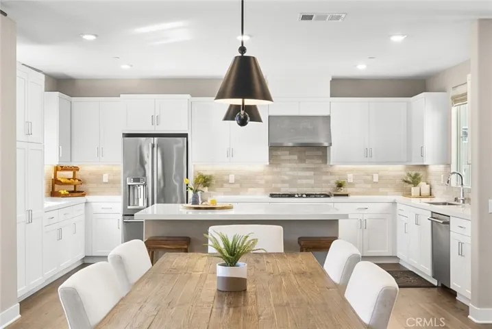 Ready to Move In 4 Bedrooms | 2.5 Bathrooms | Approx. 2,000+ Sq Ft Newer Fully Furnished Model Home with Premium Oversized Lot/Yard. Welcome to this beautifully maintained former model home located in the highly sought-after Solaire neighborhood of Five Point Valencia, one of Santa Clarita’s most vibrant and thoughtfully designed master-planned communities. Built in 2023 and showcasing professionally designed interiors, this exceptional residence offers modern style, bright open living spaces, and the rare opportunity to purchase a fully furnished home. All model home furniture and designer furnishings are included with the sale, excluding the seller’s personal items, making this an incredible turnkey opportunity.