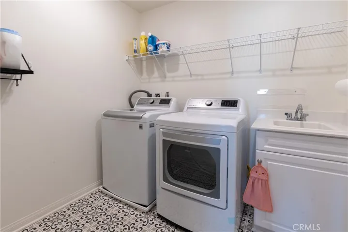The two-car garage offers ample parking and storage space, while the laundry room — complete with its own sink — adds a practical touch that busy families truly appreciate.