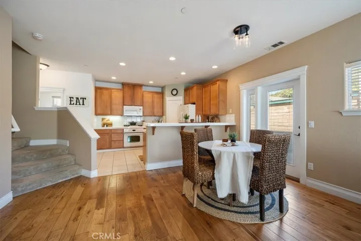 Tucked into the Spanish Oaks community just off South Elm Street, this two-story home offers a comfortable place to settle in while staying close to the heart of Arroyo Grande and just minutes from Pismo Beach. Inside, wood floors run through the living and dining areas, creating a warm space to gather and unwind. The living area flows easily into the kitchen, which offers generous counter space, bar seating, and a large pantry for added storage. A half bath is conveniently located on the main level, along with two patio doors leading to the backyard and side yard for easy indoor-outdoor living. Upstairs you’ll find the laundry room, two additional bedrooms, and a full hall bathroom, along with a spacious primary suite. The primary bedroom includes a large walk-in closet and a sliding door that opens to a deck overlooking a mature palm tree and welcoming the coastal breezes. The primary bathroom offers dual sinks, a soaking tub, and a separate shower. The yard is designed for easy maintenance with turf and patio space, ideal for enjoying the Central Coast’s mild weather. Located at the end of the street, the home also benefits from additional parking and includes a two-car garage. Start your next chapter in a home that puts the Central Coast lifestyle right at your doorstep!
