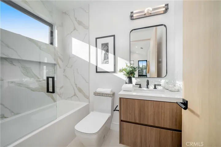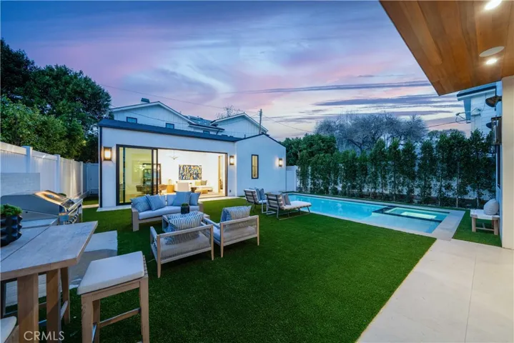 Graceful and Spacious Modern farmhouse, with stunning curb appeal, a luxurious cozy retreat on one of the most charming streets in the valley. Located in coveted and convenient Studio City, this property boosts an open welcoming floor plan and complete with ADU, providing enough room and space for all. Square in Footbridge Square neighborhood, both home and ADU have custom finishes, 6 BR – 6.5 BA in approx. 4,100 sq ft on an approx. 6,800 sq ft lot. The primary residence offers open and bright living spaces, a picture window and dining area with wood accent wall to frame your table. Gourmet inviting kitchen features custom cabinetry, stainless-steel appliances, quartz countertops, and center island with waterfall design and bar seating. Kitchen flows into equally welcoming family room with custom built-ins, fireplace featuring a porcelain accent wall, and sliding glass doors to patio. Entertaining a must in a backyard that features a turfed area, BBQ area with brick design, and of course pool/spa! Comfortable accessory dwelling unit complete with living area and kitchen, separate bedroom with walk-in closet, and three-quarter bath. Wonderful primary suite is a true retreat, featuring a pitched ceiling beam design, an electric fireplace with porcelain accent wall, walk-in closet, and private balcony. Complete vision of tranquillity with a large walk-in shower with sitting bench and porcelain tilework, soaking tub, and vanity with make-up mirror. Home is uncommonly complete —come and enjoy entertainer/designer finishes such as custom woodwork/stonework, designer lighting fixtures, custom wall finishes and accent designs, Control 4 smart home system, solar panels, and security system with alarm/cameras. Can be delivered furnished for an additional cost.