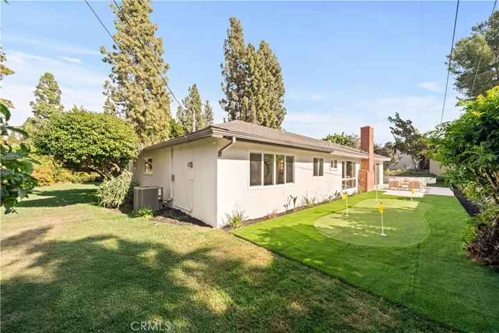 The expansive flat backyard with custom golf putting green creates the perfect space for entertaining or relaxing. Situated on a desirable corner lot with no direct neighbors in front or behind, the property offers rare openness and privacy.