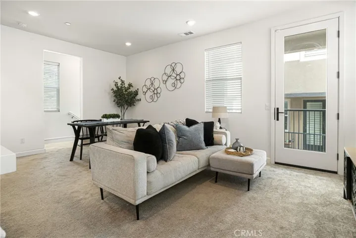 Welcome to this beautifully designed 2-bedroom, 2.5-bath townhome built in 2022 located in Amber at Sunset, a desirable gated community offering resort-style amenities and modern living. Step inside to an open-concept floorplan featuring high ceilings and recessed lighting, creating a bright and inviting space filled with natural light. The stylish kitchen showcases espresso-colored cabinetry, quartz countertops, stainless steel appliances, a pantry, and a large center island with seating and additional storage, perfect for entertaining or everyday living. The living area opens to a private balcony, providing a relaxing outdoor retreat. A convenient half bath for guests is also located on the main living level. Upstairs, the primary suite offers a walk-in closet and a spa-inspired bathroom with dual sinks and a walk-in shower. The secondary bedroom includes its own full bathroom with a tub and overhead shower, ideal for guests, roommates, or a home office setup. An interior laundry area with stacked washer and dryer adds convenience. Additional features include an oversized two-car attached garage, tankless water heater, and fully paid-off solar, offering significant savings on electricity. The home is also equipped with smart home technology for added comfort and efficiency. Residents enjoy outstanding community amenities including a resort-style pool, spa, outdoor showers, barbecue areas and four playgrounds. The home is ideally located near CSU San Marcos, shopping, dining, and convenient freeway access. Outdoor enthusiasts will love being just minutes from Elfin Forest Recreational Reserve, offering over 11 miles of scenic hiking, biking, and equestrian trails. This nearly new townhome offers the perfect combination of modern design, energy efficiency, community amenities, and a prime location. Your next home awaits you!