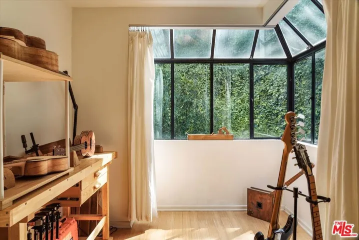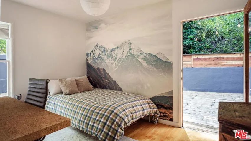 Perched above the street and screened by mature foliage, this mid-century Laurel Canyon treehouse is a peaceful retreat where architecture and nature meet. Built for inspiration, tucked away from view yet moments from the pulse of the city, the design nods to classic mid-century design with subtle aesthetic touches reminiscent of Frank Gehry – skylights, warm natural materials, and light that shifts beautifully throughout the day – creating a seamless connection between indoors and the surrounding canyon landscape. Inside, the house offers three bedrooms and two baths, thoughtfully arranged for easy living – lovely flow of airy common spaces, with 2 bedrooms on the main level and the primary suite and sunroom occupying the entire upper floor. Outside, on an over 9000sf lot, the generous and expansive deck and yard areas are ideal for morning coffee, dinners al fresco, play and rest. From every vantage point, you see layers of green and sky – offering privacy, calm, and inspiration. This is more than a home, it’s a creative haven, a peaceful escape, and a rare opportunity to live immersed in the beauty, spirit and wonder of the canyon. There is a detached 2 car garage on street level and ample street parking. Wonderland School District.
