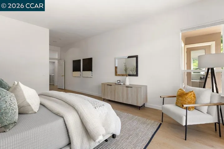 Welcome to this Eagle Ridge end-unit condo located in the lone building situated on a private cul-de-sac surrounded by a picturesque setting. The pathway to the home provides level-in access to the front door and the attached garage with interior access keeps you protected from the elements throughout the year. Step inside and enjoy over 2,000 square feet of modern Rossmoor living with high ceilings, stylish plank hardsurface flooring, and sleek, smooth front cabinetry in the Kitchen and both baths. The property has been reconfigured with a wall removed between the Dining Room and Living Room, making the space feel large and welcoming. A gas fireplace provides instance ambiance with a push of a button and built-in cabinetry allows the perfect place for displaying your treasures. Floor-to-ceiling bookshelves have been added in the Den, making the perfect home library or studio. Downsizing is not an issue with an enormous walk-in closet off the Primary Bathroom that has been all finished out with a custom storage solution system. Home chefs will appreciate the gas stove and the abundance of counter and cabinet space and rare walk-in pantry in this massive Kitchen.