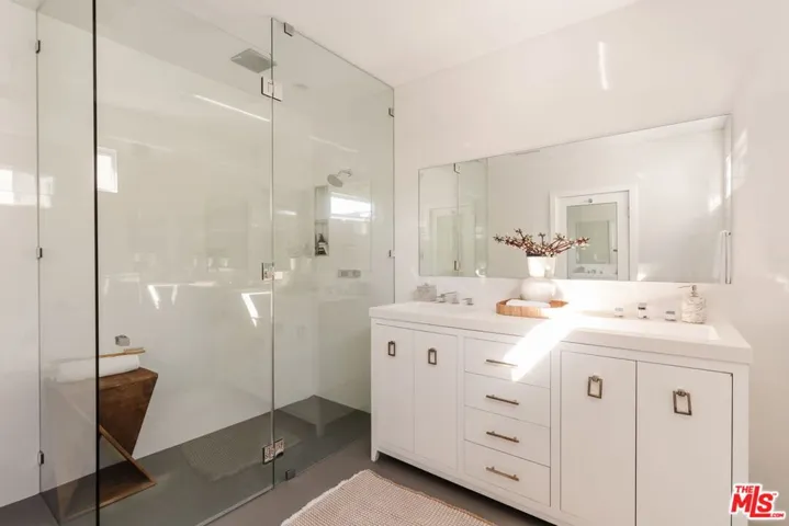 Set along a quiet, tree-lined street in a sought-after pocket of West Hollywood, this fully gated Spanish Revival has been thoughtfully reimagined through a comprehensive renovation completed between 2020 and 2024. A newly added second level and meticulous modernization of the main residence, guest house, and surrounding grounds bring contemporary ease to the home’s enduring architectural character. A hedged front garden creates a graceful approach, opening to interiors defined by warm wood floors, generous natural light, and a calm, cohesive palette. The living spaces unfold with quiet refinement — from the inviting living room to a sunlit dining area and a beautifully appointed kitchen designed for both everyday living and effortless entertaining. Caesarstone surfaces, Sub-Zero and Wolf appliances, and abundant pantry storage anchor the space with understated sophistication. Advanced home tech is seamlessly integrated throughout, including Sonos surround sound, Lutron lighting, smart climate control, dual tankless water heaters, automated pedestrian and driveway gates, and a security system with perimeter cameras. The main residence offers three en-suite bedrooms, including a serene primary suite on the main level. Here, sliding doors open directly to the garden, while a custom walk-in closet and spa-inspired bath — featuring a glass-enclosed rain shower and dual floating vanity — create a tranquil retreat. Designed with Southern California living in mind, the backyard unfolds as a series of intimate outdoor moments. Two custom pergolas frame areas for dining and lounging, while a turf lawn and tall privacy fencing create a secluded setting for entertaining. A fully renovated detached guest house — with its own designer kitchen, living space, bedroom, and full bath — offers flexibility for extended stays, a creative workspace, or potential rental income. Moments from the energy of West Hollywood’s entertainment corridor and world-class dining and shopping along Beverly Boulevard and Melrose Avenue, the home offers a rare balance of architectural presence and quiet residential charm in the heart of the city.