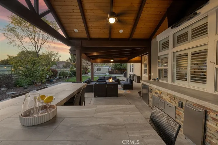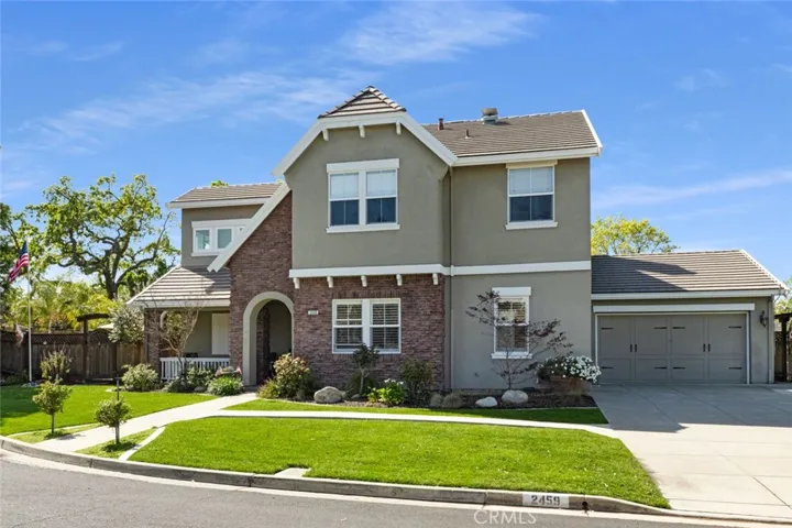 This beautifully upgraded 5-bedroom, 4-bathroom home is located on a private cul-de-sac near Downtown Livermore and within top-rated school districts. The property features a spacious 4-car garage and an extended driveway that accommodates up to eight vehicles, offering plenty of parking for family and guests. Inside, the home showcases luxury vinyl flooring, recessed lighting, designer lighting fixtures, ceiling fans, custom shutters, Wayne’s coating, and a fire sprinkler system. Fresh interior and exterior paint add to the home’s clean, updated feel. The large family room provides a welcoming space to gather, highlighted by a cozy gas fireplace. The chef’s kitchen is designed for both style and functionality, featuring luxury stainless steel appliances including a Monogram six-burner gas stove, double convection oven, and a built-in KitchenAid refrigerator. A large center island with table seating for six makes it perfect for cooking, dining, and entertaining. The spacious primary suite includes a fully remodeled designer bathroom with double sinks and a walk-in closet. A convenient downstairs bedroom with a full bathroom features a Murphy bed, allowing the space to also function as a guest room or home office. Additional features include dual air conditioning, an indoor laundry room, and abundant storage. The backyard is an entertainer’s dream, featuring a stunning outdoor arbor with seating for up to 22 guests, a large pool and jacuzzi, and a private yard that backs to a peaceful HOA nature trail. An outdoor studio offers flexible space for a gym, office, or creative studio. Additional highlights include a concrete tile roof and solar for energy efficiency. This exceptional Livermore home offers the perfect blend of luxury, space, and indoor-outdoor living in a highly desirable location.