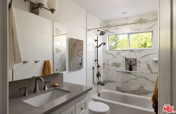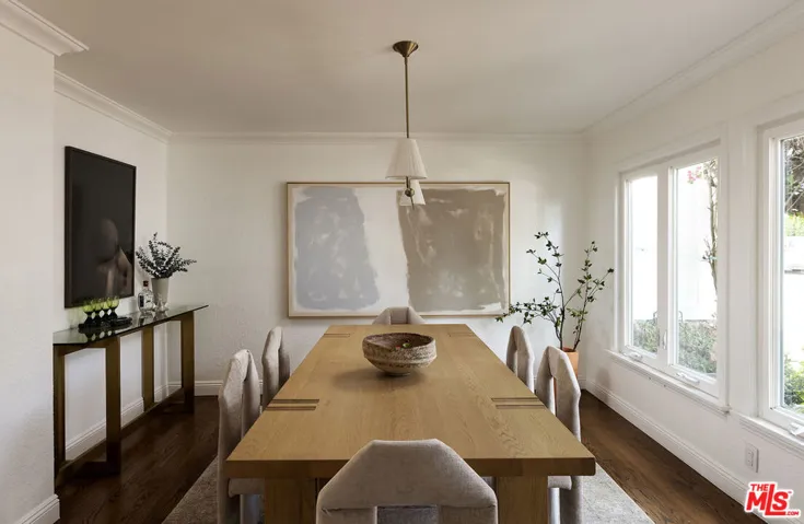 Set on a quiet cul-de-sac in the Los Feliz hills, this light-filled traditional offers sweeping views of the surrounding hillsides and the Griffith Observatory beyond. Inside, the home unfolds with warmth and architectural character. A dramatic beamed ceiling crowns the main living room, where a brick fireplace and expansive windows frame the landscape while filling the interiors with natural light. Two terraces extend the home outdoors, creating an effortless connection between indoors and out – ideal for morning coffee, sunset dinners, and relaxed gatherings above the hills. With four bedrooms and five bathrooms, the home offers both scale and flexibility, moments from Griffith Park, Los Feliz Village, and the neighborhood’s most beloved destinations.