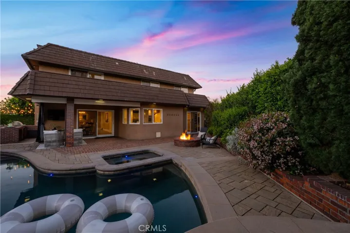Nestled in the prestigious El Dorado Park Estates, this rare Tower model home sits on an exceptionally spacious interior lot, offering privacy and tranquility on a quiet, less-traveled street. A true estate property in a 5-star location, it’s within easy walking distance to the highly desired Newcomb Academy. Step inside to a welcoming formal foyer that flows effortlessly into two generous living spaces and a large informal dining area. The primary living space is complete with custom fireplace, recessed lighting, and adjacent wet bar. The spacious kitchen shines with a convenient center island with quartz counter top, sleek stainless steel appliances, and captivating views of the amazing backyard oasis. Upstairs, the large en-suite primary bedroom feels like a private retreat, complete with a cozy fireplace, a custom-built walk-in closet, and direct access to a sprawling deck overlooking the grounds. Additional highlights include a versatile bonus/game room, a striking custom spiral staircase, a dedicated individual laundry room, and direct garage access. The recently resurfaced pool anchors a private, resort-like backyard with a very generous side yard, built-in barbecue peninsula, gas fire pit, and dedicated entertainment area—ideal for year-round enjoyment. Modern comforts abound with central heat and air conditioning, dual-pane windows, an owned solar system, security system, auto-irrigation, finished garage with recessed lighting and WiFi-controlled pool equipment. A spacious she-shed adds incredible utility, whether as a creative studio, home office, or peaceful escape. Enjoy easy freeway access, entertainment, dining, golf course, El Dorado Park and the coveted Long Beach Airport.