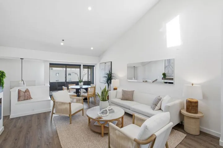 Top floor, two-level penthouse unit featuring dramatic vaulted ceilings with skylights on the main level, open concept living, dining and gorgeous kitchen, and views of the Western Hills! Downtown Palo Alto living at its finest, this two bedroom, two-and-a-half bathroom home offers an unbeatable location just a block away from Whole Foods, Peet’s Coffee, Pizzeria Delfina and the fantastic dining and shopping along University Ave. Stunning kitchen updated with sleek modern cabinetry, peninsula for extra counter space and pantry unit for storage. Additional comforts include a half bath on main level, in-unit washer dryer, building elevator, deeded storage unit and two parking spaces in the secure underground garage. Top-rated Palo Alto schools including Addison Elementary, Greene Middle School, and Palo Alto High School (Buyer to verify) and proximate to Caltrain and Highway 101 for easy commuting. This is a must-see!