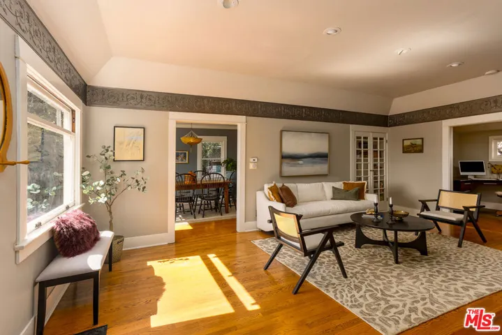 At the end of a quiet cul-de-sac, set gently above the street, this charming bungalow feels like it was plucked from another time. With its cottage-like character and leafy surroundings, the home carries the easy romance of an East Coast bungalow while remaining firmly rooted in the hills of Highland Park.Inside, warmth and simplicity set the tone. Sunlight moves easily through the home, illuminating spaces that feel comfortable, inviting, and full of character. The living areas flow naturally, with a cozy den that offers a perfect spot for reading, working from home, or simply settling in for a slow afternoon.Two bedrooms and one and a half baths provide an easy, functional layout, while the thoughtfully updated kitchen and baths balance modern convenience with the home’s original charm. Overhead, a bonus attic space adds welcome flexibility, ready to serve as a creative nook, extra storage, or a quiet workspace.What truly sets this property apart is the land. The oversized lot offers an uncommon sense of privacy and possibility, with mature shade and fruit trees scattered throughout the yard. It is the kind of outdoor space that invites gardening, gathering with friends, or simply enjoying the calm of a green, open setting.A large two car garage with an attached storage room adds practicality and plenty of room for projects, tools, or weekend hobbies.Though tucked away on its peaceful cul-de-sac, the home remains close to the energy of the neighborhood. The restaurants, cafs, and beloved local spots along York Boulevard are nearby, offering an easy connection to the vibrant community while preserving the quiet comfort of home.Charming, private, and full of soul, this is a place that feels both timeless and deeply livable.