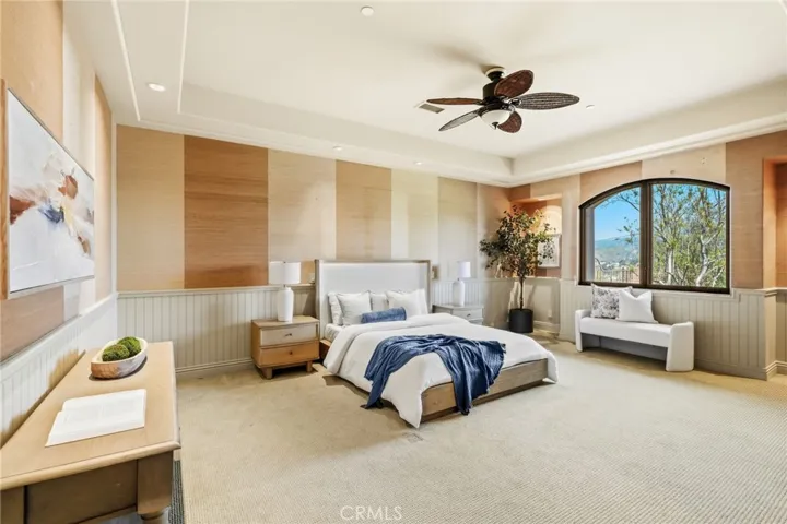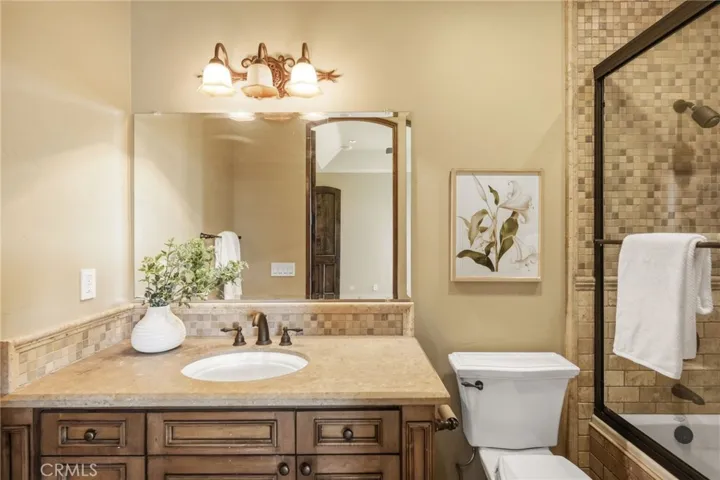 Upstairs offers two additional en-suite bedrooms, a second laundry room, and a spacious bonus room with game table niche, large wet bar, and rooftop deck capturing sweeping views. A state-of-the-art home theater with leather seating, floated walls, enclosed equipment, large screen, and immersive sound system completes the home’s impressive entertainment offerings.