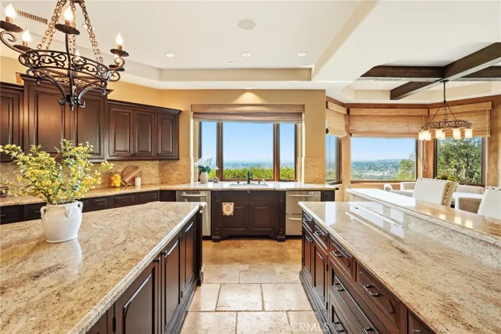 Set behind private gates on a secluded one-acre lot, this exceptional custom estate offers breathtaking 270-degree city light and sunset views with unmatched privacy. The double-door entry opens to a soaring 21-foot foyer, leading to elegant living spaces with 14-foot custom lighted ceilings designed to showcase the spectacular vistas.