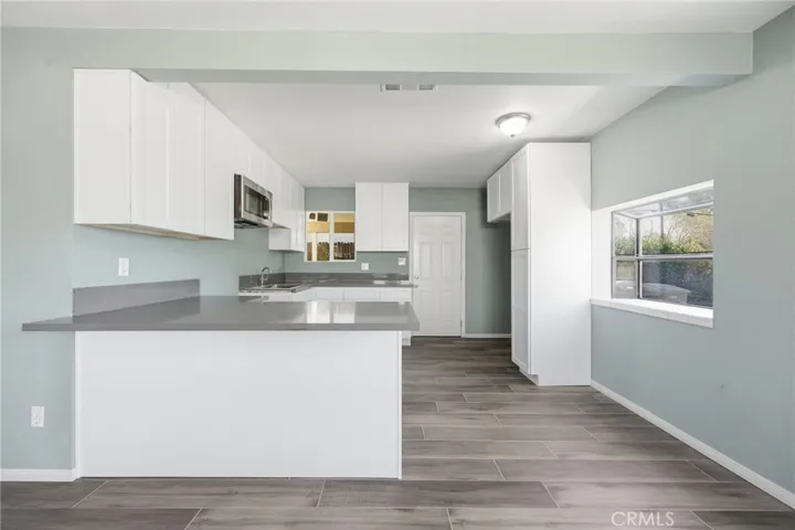 Step inside to find brand new laminate flooring in the bedrooms and stylish new tile flooring in the living room and kitchen, creating a bright and inviting space perfect for everyday living and entertaining. The fully remodeled kitchen features brand new cabinetry, sleek quartz countertops, and updated finishes, making it both functional and beautiful.