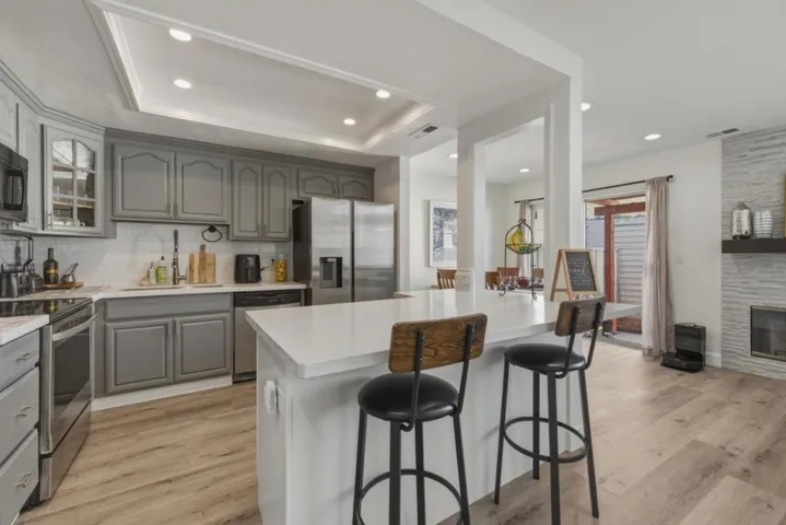 Welcome to your peaceful retreat nestled right by the hills in a charming, quiet community. This stunning, two-story townhome has been fully renovated from top to bottom, featuring modern bathrooms, a designer kitchen, a large living room with double-height ceilings and spacious bedrooms with dramatic vaulted ceilings. Step outside to discover a rare find for modern townhomes: a private backyard perfect for relaxing. Because the property borders a sprawling, protected open space, your views of the rolling green hills and grazing horses are entirely unobstructed, ensuring the interior remains exceptionally sunny and airy. The small, friendly community also offers two cute little lawn “breather spaces,” ideal for sunny afternoons or a quick walk with the dog. Perfectly positioned in a premier school district serving Rancho Milpitas Middle and Milpitas High (both 9/10), this home offers an unmatched combination of serene hilltop views and top-tier educational opportunities. If you are looking for a turnkey, whisper-quiet home with an unbeatable location, this is the one.